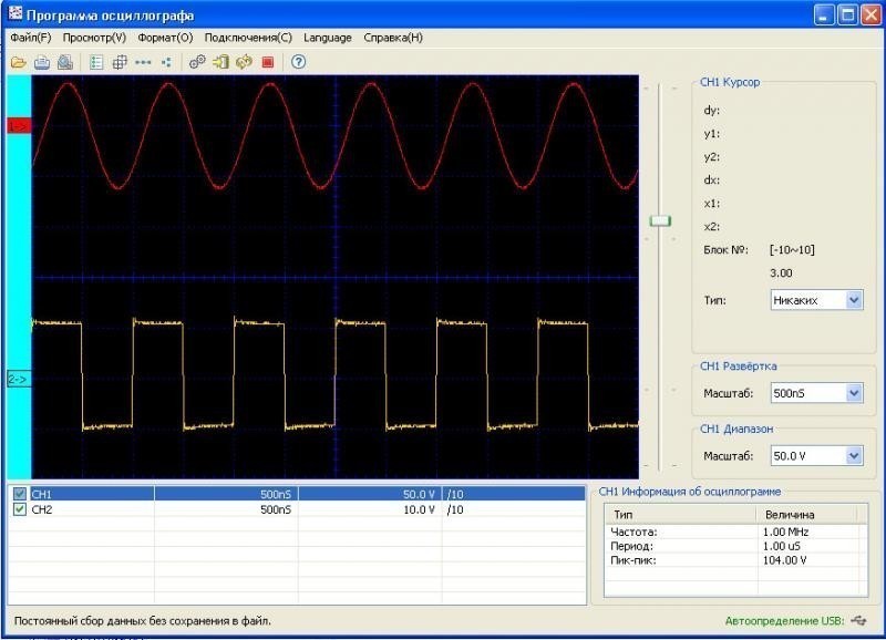 Кроме того, пользователь может передвигать осциллограмму по вертикали или горизонтали